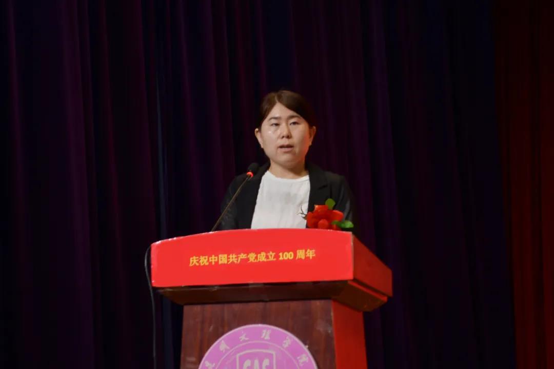 获得省委教育工委表彰的先进基层党组织代表、经济学院党总支组织委员穆颖超,优秀共产党员代表、外国语学院党总支寇苗先后发言。两位同志的发言从不同角度总结回顾了各自工作的历程,展现了先进党组织、先进个人的战斗堡垒作用和先锋模范作用,同时也表达了继续不忘初心、牢记使命、接续奋斗的决心。