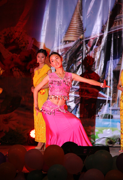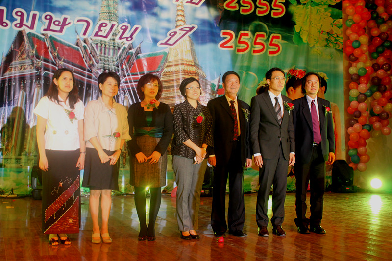 外语学院在各级领导的关心和各位老师的努力之下,为了促进校园文化建设,为泰语专业学生营造良好的泰语语言文化氛围,同时为泰语学生提供一个展示泰语语言能力的舞台,于2012年4月10日下午14:00;18:00点在云南师范大学文理学院龙泉校区举办了;中泰共庆宋干节;的文化活动。泰国驻昆总领事及副总领事、泰国旅游局、泰国商务部等泰国驻昆机构的相关领导与我院各级领导均出席了本次活动。同时,在我院学习的泰国远东大学、斯巴顿大学及华侨崇圣大学的近50名留学生也参加了本次活动。