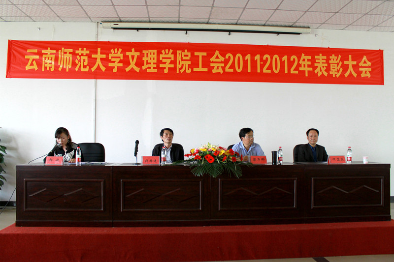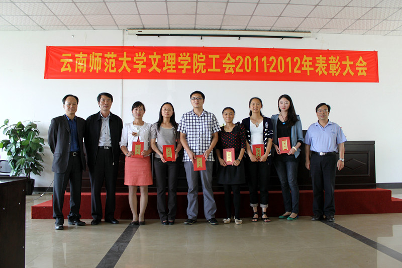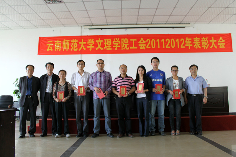 2012年5 月17日下午,云南师范大学文理学院工会2011-2012年度表彰大会在龙泉校区综合楼704会议室举行。学院党委书记梁子卿、院长张路进,工会主席何笃庆和工会会员及受表彰人员共200多人,参加表彰大会。大会由学院工会副主席张敏主持。工会主席何笃庆作2011-2012年度工会工作总结并宣读学院工会关于对2011—2012年先进工会小组、先进工会工作者、工会积极分子、“五好”家庭表彰的决定。大会表彰了4个先进工会小组、8名先进工会工作者、76名工会积极分子、12户五好家庭。党委书记梁子卿、院长张路进、工会主席何笃庆给获奖单位及个人颁奖。梁子卿书记代表学院党委、行政向受表彰的先进集体、先进个人表示热烈的祝贺!向全院所有兢兢业业、无私奉献的教职员工表示真诚的感谢和敬意!充分肯定了学院工会为加强党组织与教职工的密切关系,促进学院内涵发展、科学发展、和谐发展所做的贡献。并就进一步做好学院工会工作讲了几点意见:一是充分发挥工会在教职工思想教育活动中的组织作用,二是充分发挥工会在学院管理工作和政治生活中的民主监督作用,三是充分发挥工会在校园文化建设中的生力军作用,四是充分发挥工会在为群众办实事中的服务作用。最后梁书记号召全体工会会员,以主人翁的姿态,发扬团结协作精神,开拓进取,为实现学院跨越发展努力工作。
