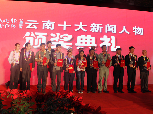 同时获得2011年度云南十大新闻人物的段林希在领奖台