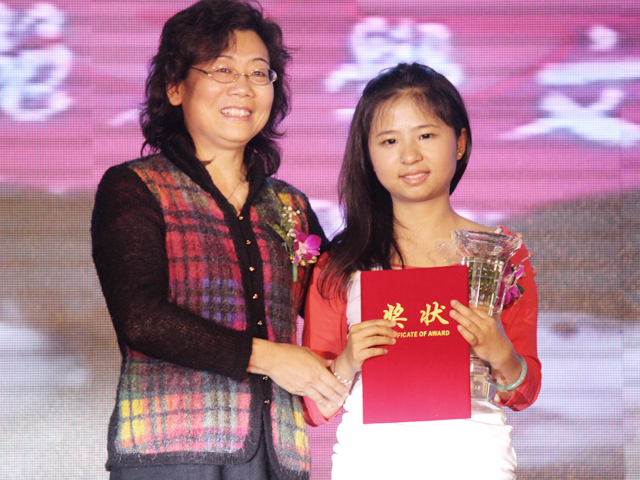 一件棉T恤、牛仔裤,腼腆,瘦小是她在颁奖典礼时给大家的第一印象,正如她所说:她只想安静地过着和以往一样的生活,平凡、简单、快乐。