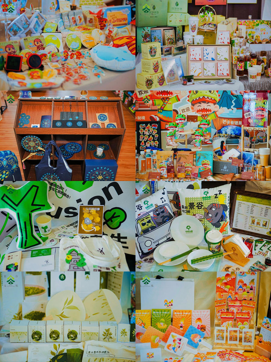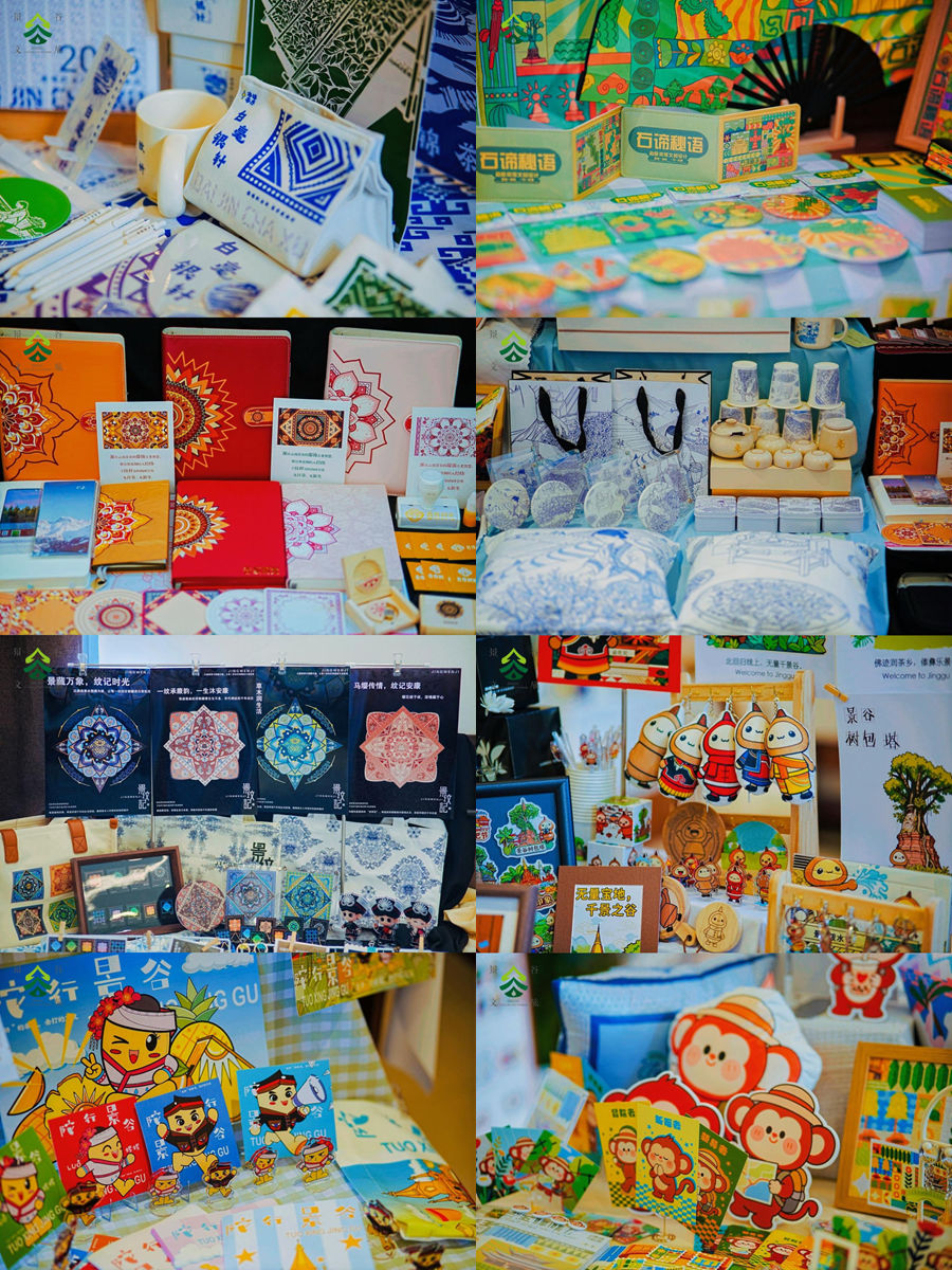 展览现场,上百件文创作品涵盖文具、包装、装饰等多个类别,风格各异却皆凝聚着同学们对景谷文化的个性化解读与情感:陈寅寅同学的“木兰记”系列,将远古木兰化石形态转化为现代设计语言;吕添英同学的“水与争锋”以生动的视觉形象展现出采花泼水节的独特魅力;严皓文同学的“傣酿”系列给蜂蜜的包装设计披上了神秘的外衣;黄玉玲同学的“觅景文具”则把地方风物元素融入日常学习用品。这些作品不仅体现了学生扎实的专业能力,更展示了他们对地方文化的深刻理解与创新诠释。
